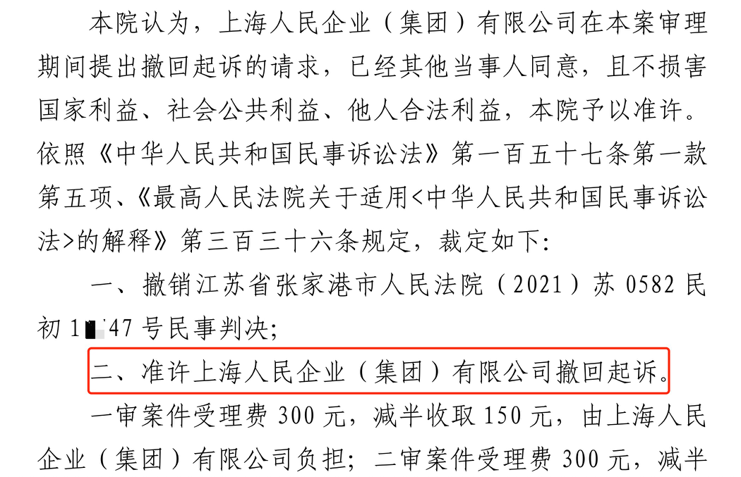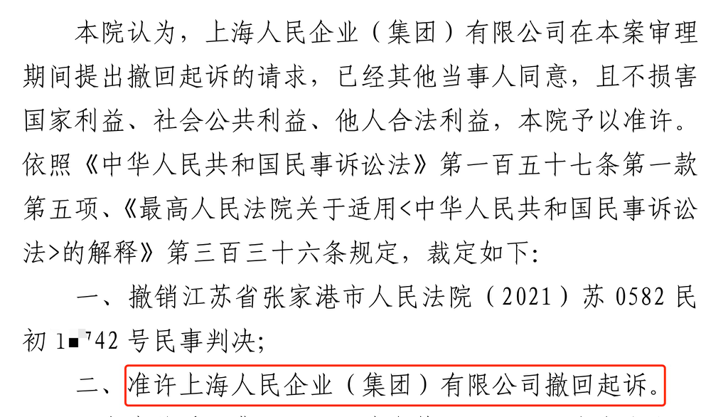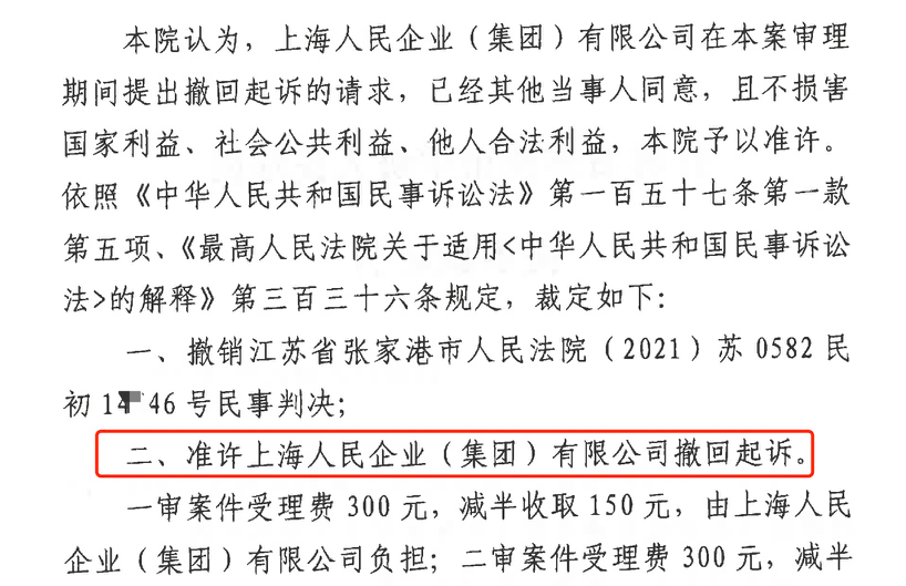 四平胜诉佳讯 | 人民企业系列案苏州六案上海人民公司撤诉