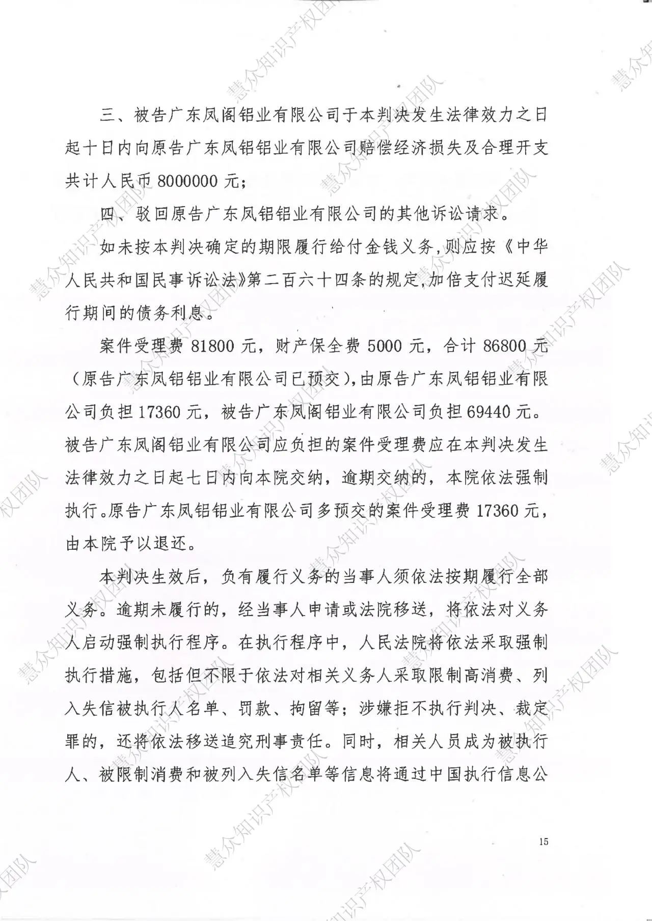 四平判赔800万!辉知队代理“凤铝”商标维权案胜诉
